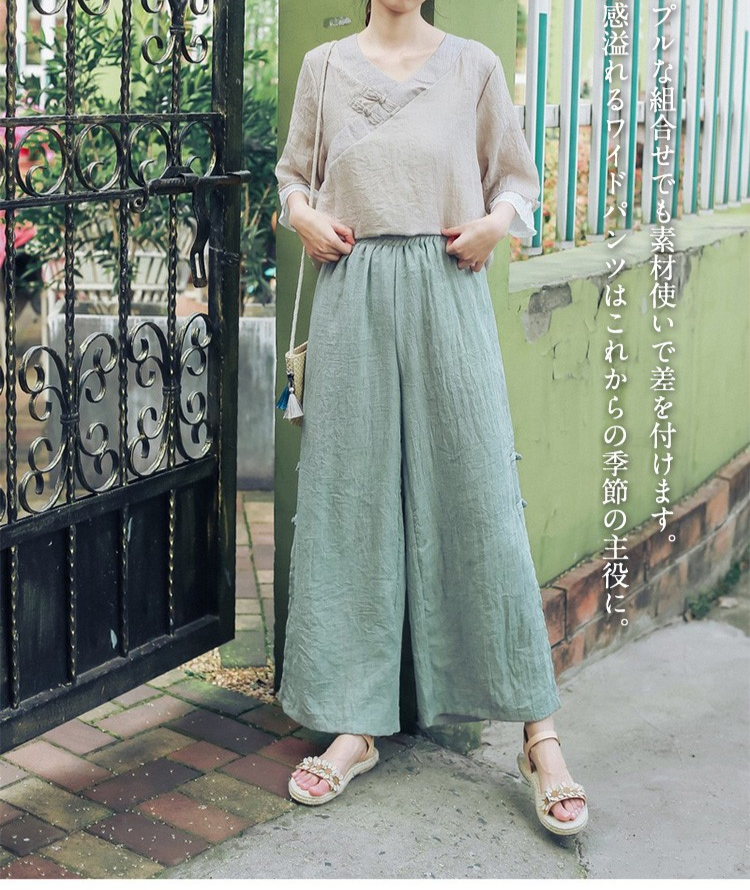 【ワイドパンツ】 ゆったりなのにすっきり魅せる、綿麻ワイドパンツ。